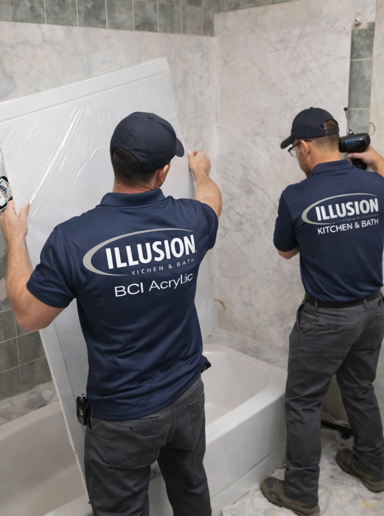 Illusion Kitchen & Bath specializes in bath transformations that upgrade both form and function without unnecessary disruption. From acrylic tub and shower systems to full bath renovations, we create clean, modern spaces designed to improve comfort, safety, and daily use—while adding lasting value to your home.